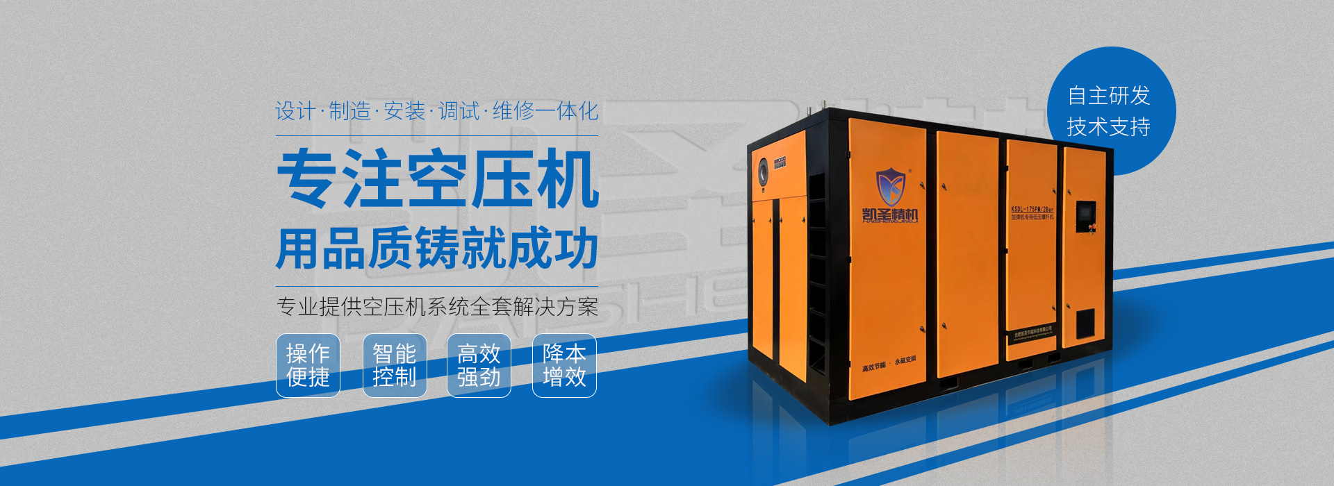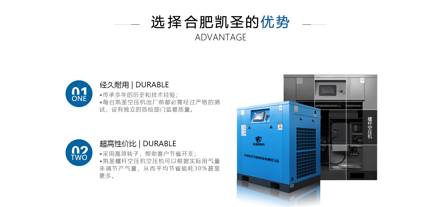 合肥凱圣節(jié)能科技有限公司是從事永磁變頻螺桿壓縮機(jī)系統(tǒng)的設(shè)計(jì)、制造、安裝、調(diào)試、維修與一體的公司。 在多年的螺桿空壓機(jī)研發(fā)與推廣歷程里,凱圣聚集和培養(yǎng)了大量壓縮機(jī)技術(shù)設(shè)計(jì)和管理人員,迅速發(fā)展成為集研究、生產(chǎn)、銷(xiāo)售、服務(wù)等環(huán)節(jié)為一體、嚴(yán)格按照標(biāo)準(zhǔn)執(zhí)行的企業(yè),公司成立開(kāi)始,即以滿(mǎn)足客戶(hù)的實(shí)際需求為己任,大力開(kāi)拓國(guó)內(nèi)外節(jié)能型空壓機(jī)市場(chǎng),并始終保持創(chuàng)新精神,全力研發(fā)更為節(jié)能的螺桿式空壓機(jī),努力站在空壓機(jī)節(jié)能領(lǐng)域的排頭位置。 應(yīng)用范圍:公司產(chǎn)品廣泛應(yīng)用于機(jī)械、輕工、紡織、食品、石油、化工、冶金、礦山、電力、城建、醫(yī)學(xué)研究和科研等各行業(yè)中,將為節(jié)約能源做出巨大貢獻(xiàn)。公司秉承“信譽(yù)至上,...